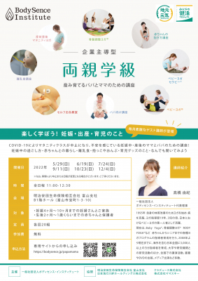 一般社団法人ボディセンス・インスティテュートは、コロナ禍での妊娠出産に不安を抱える妊産婦とその家族向けに、マタニティ&産後ケアサービス『企業主導型 両親学級』の第5回を2022年9月11日に開催しました。