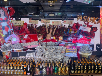 初日の9/21にはお祝いのTIP30000ベリー(300万円分)がプレゼントされ、特大マティーニグラスに敷き詰められたチップを、あたかも聖水の如く撒き散らし、来場者の度肝を抜いた。