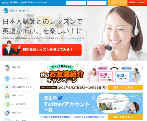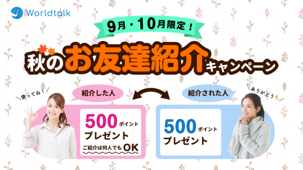 ワールドトークでは、秋のお友達紹介キャンペーンを実施しています。