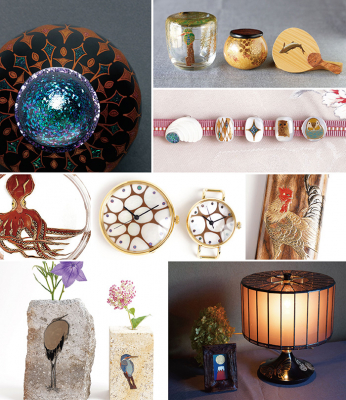 様々な技法を駆使し、優美で繊細なものから愛らしくユニークなモノまで生み出している針谷絹代さん。今回は特に細やかな螺鈿の技法をご覧いただきます。創作への想いなどご本人との対話もお楽しみください。
