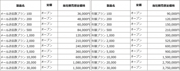 ・メール送信数プラン