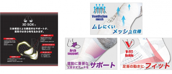 肉体との一体化を追求し、進化するソックス。スポーツを愛する全てアスリートのために、より以上のパフォーマンスと新たな可能性を創造する高機能ソックスブランド。多くのトップアスリートからの意見を取り入れ、ランニング、自転車、クライミング、ゴルフなど競技別に商品を企画開発し、国内外で取得した特許製法「3DSOX」を駆使し、選び抜いた素材、細部までこだわり、自社一貫工場だから出来る本物の日本製の商品です。