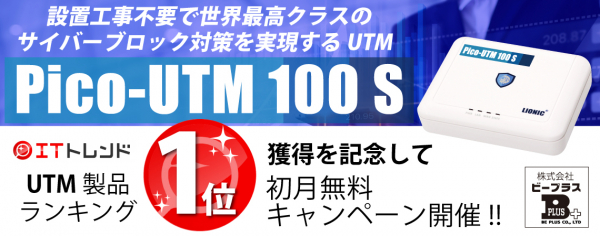 株式会社ビープラス(本社:東京都港区、代表取締役 沖野裕郎、以下ビープラス) が販売する「Pico-UTM 100 S」がIT製品の導入の際に比較・検討ができるwebサイト「ITトレンド」のUTM (統合脅威管理)製品ランキングで1位を獲得いたしました。( https://it-trend.jp/utm/ranking )