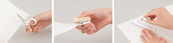 今回、「チームデミ」の中から、サクサク切れる「シザーズ」、10枚とじの「ステープラー」、カッティングに便利な「カッター+ルーラー」を発売。いずれもペンポーチにすっぽり収まるミニサイズながら、文具としての高い機能性を備えています。いつでも持ち運び、サッと取り出して便利にお使いいただけます。