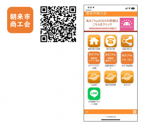 朝来市商工会が、あさごPayのサポートとして、朝来市商工会すまっぽん!も同時公開されました。加盟店の管理画面へのリンクや操作方法、問い合わせ先などをいれ、加盟店をサポートするだけでなく、あさPayの運用が終わったあとでも、商工会のイベントや、朝来市の観光情報などをお届けするツールとしても、活用することを念頭に公開されています。