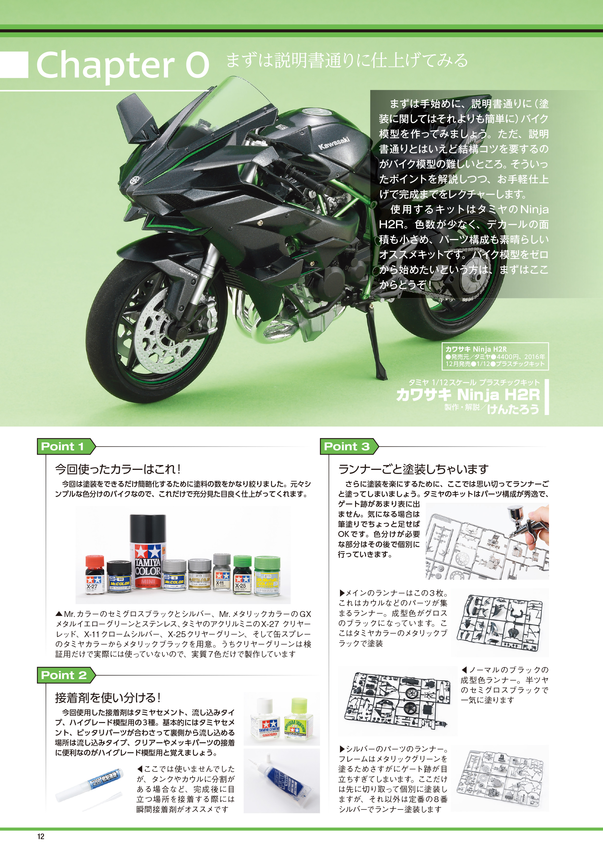 最もオーソドックスな1/12スケールのキットを使用し、難易度別に「チャプター0」から「チャプター4」までの5段階に分かれて作例を作り起こし。豊富な途中写真と解説で、製作中に意識するべきポイントやコツがまるわかりの1冊です。