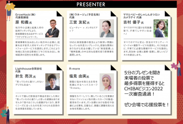 10月12日、GrowHack株式会社(東京都千代田区)の代表取締役の原和義が、千葉県が主催するちば起業家交流会in千葉のプレゼンターとして選出されましたことをお知らせいたします。