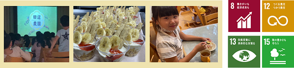 本イベントは、SDGs(持続可能な開発目標)が掲げる社会課題について啓発するため、関西の幼稚園・保育園の園児約2万人を対象に、日替わりでSDGsをテーマにした特別給食メニューを提供、その他、各園での絵本の配布や読み聞かせ、アニメーションや生産者からのビデオメッセージの上映などを行い、子どもたちと楽しくSDGsについて学ぶことを目的に実施されました。