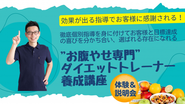・タイトル:完全オンライン可!"お腹やせ専門"ダイエットトレーナー養成講座体験&説明会