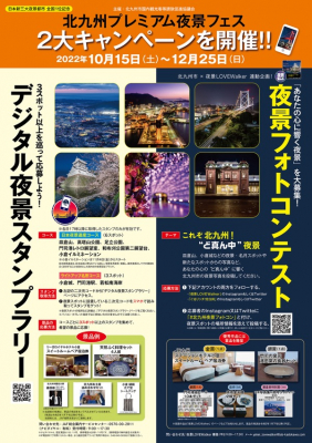 一般社団法人夜景観光コンベンション・ビューロー(代表理事:丸々もとお)では、2022年10月15日(土)~12月25日(日)の約2ヶ月間、「日本新三大夜景都市」に認定されている北九州市が開催する『プレミアム夜景フェス』に合わせて2大キャンペーンを実施します!