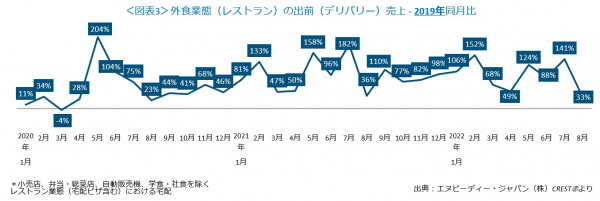 出前(デリバリー)は2019年同月比33%増