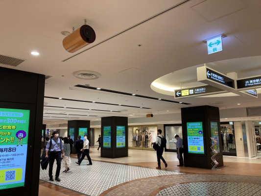 ヤエチカでは今年6月にセンタースポット、8月にメイン・アベニューをリニューアルしました。そのほか、人気カレー店4店舗からなるヤエチカ初の編集ゾーン「TOKYO CURRY QUARTET」をオープンし、オフィスワーカーを中心に都心生活者や来街者へ向けたリニューアルを行っています。10月5日に新施設名ヤエチカと新ロゴが正式に発表されたことに伴い、当社も本日10月14日にスピーカーが導入されたことを発表致します。