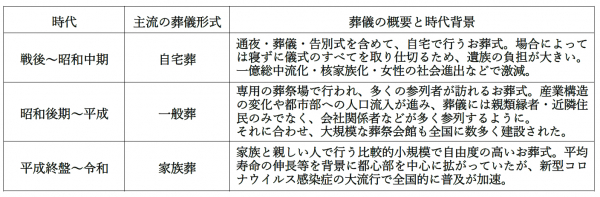 「葬儀形式の変遷とその時代背景」(家族葬のファミーユ作成)
