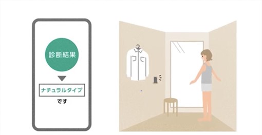 スマートフォンで撮影した写真を基に、AIがその場で骨格診断を行います。
