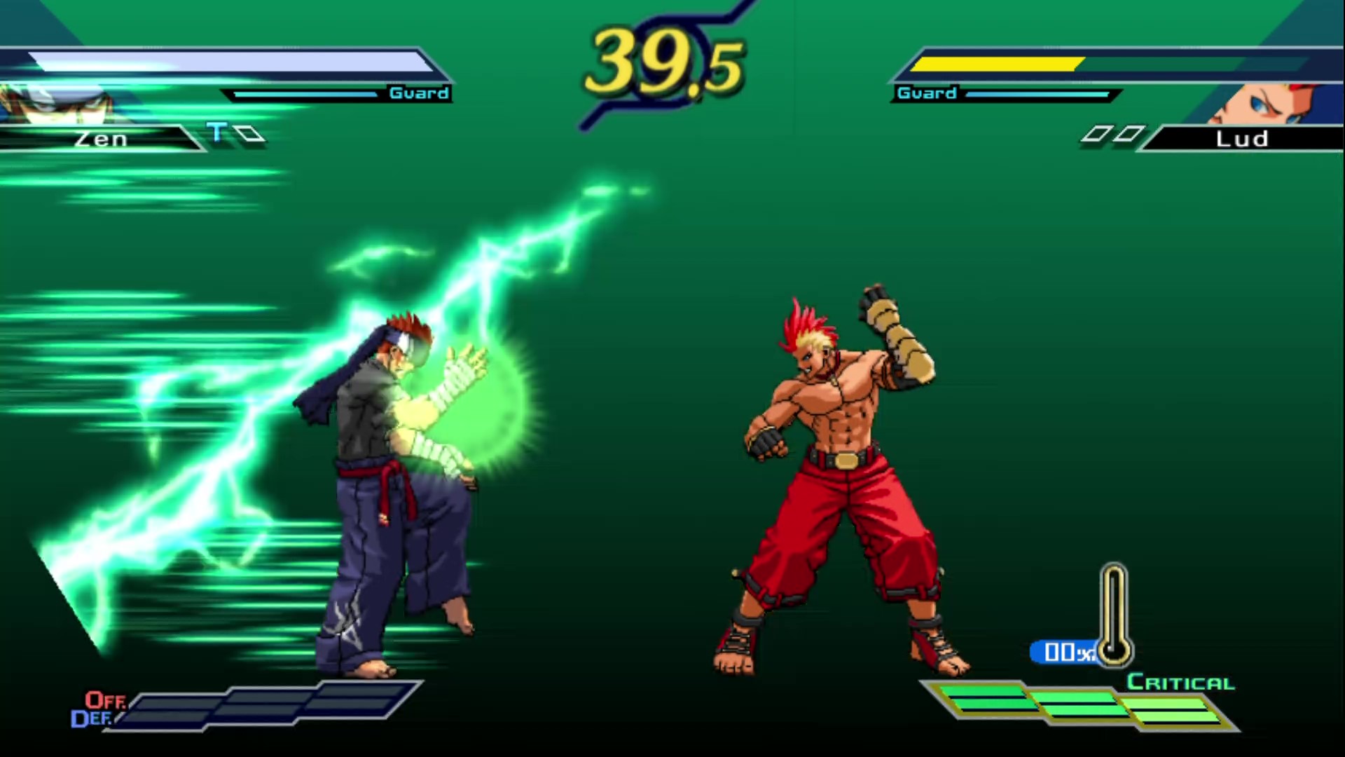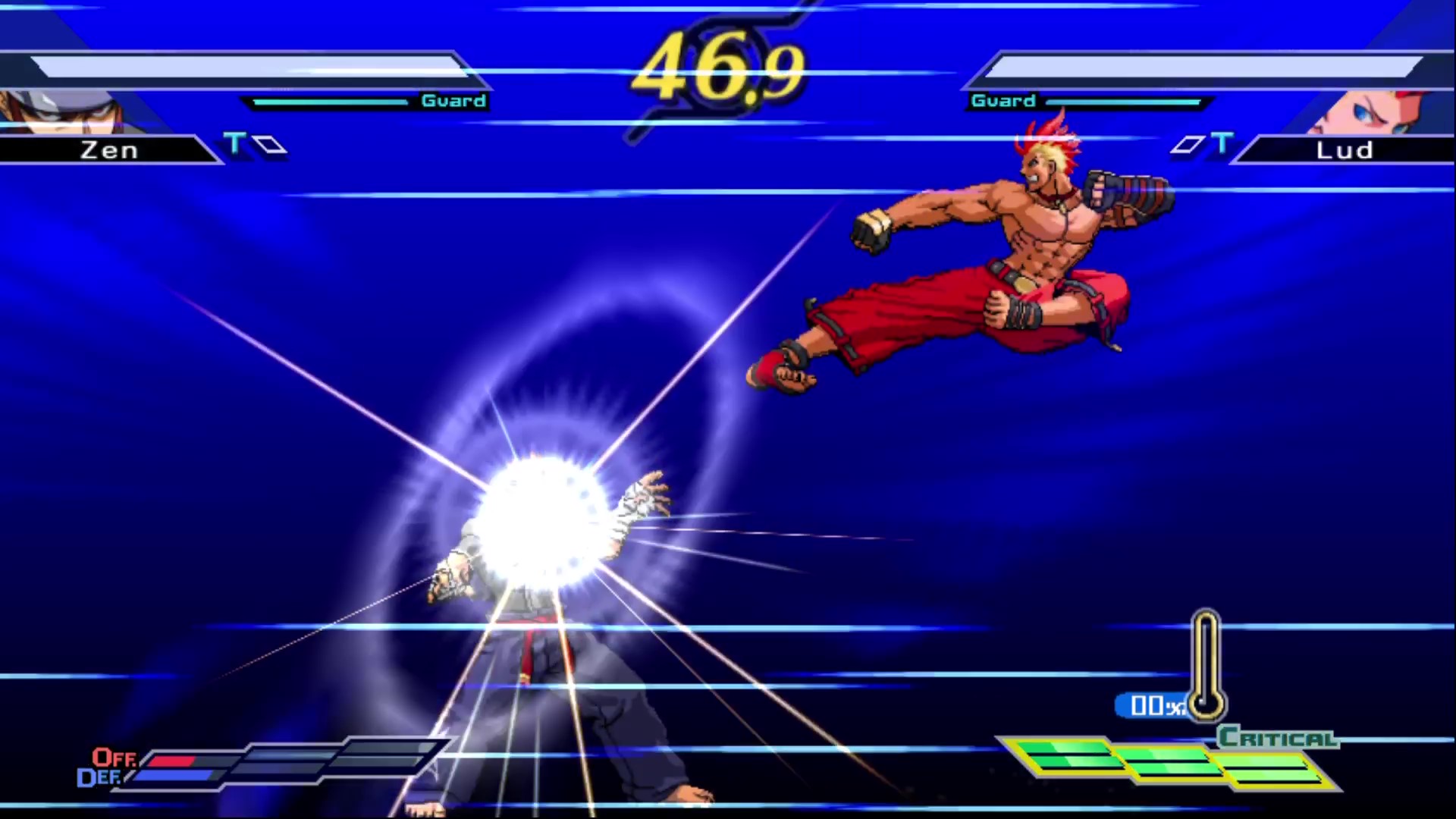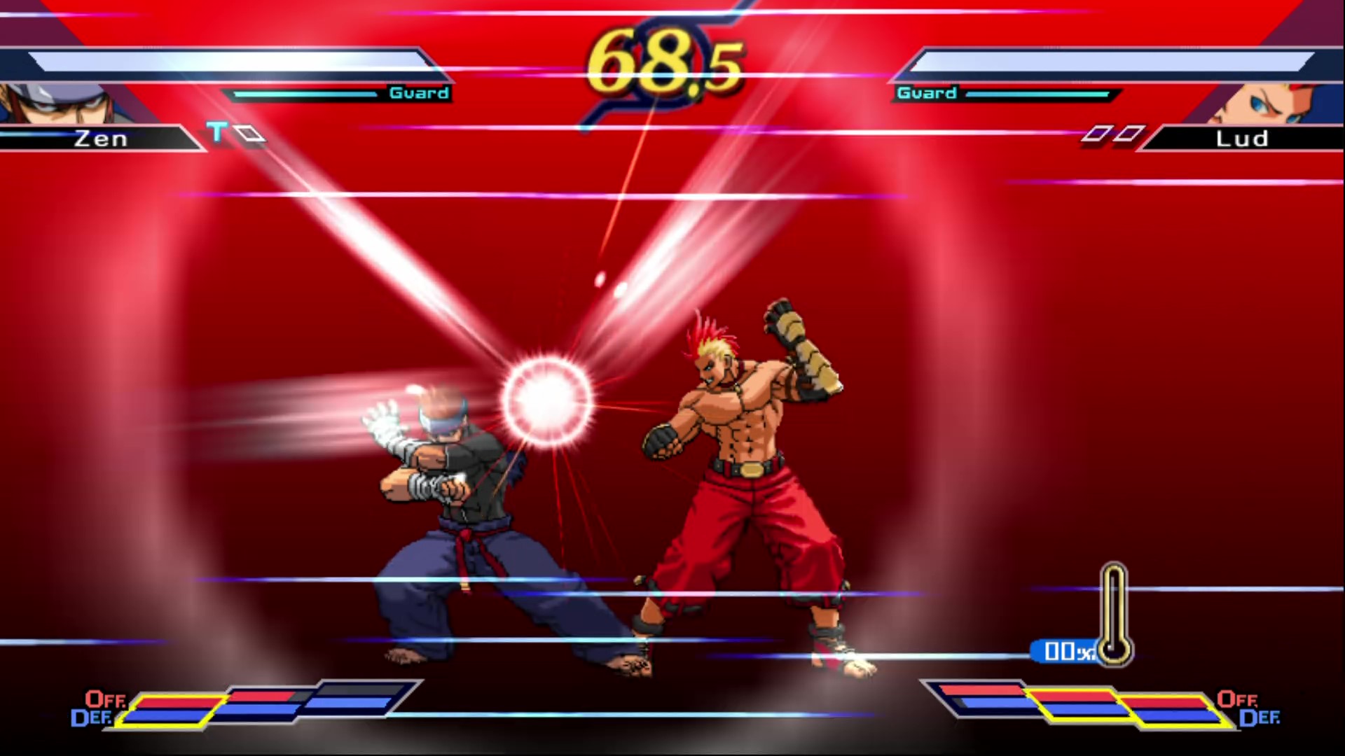 『ザ・ランブルフィッシュ2』では、オフェンスとディフェンスの2本のゲージを採用。オフェンスゲージは、相手に攻撃をヒットやガードさせると溜まり、消費することで特殊な攻撃行動を発動。ディフェンスゲージは、時間経過か相手の攻撃をガードすることで溜まり、切り返しやカウンターなどの防御行動を発動します。戦況を見極め、この2つのゲージをいつどのように使うかが、本作を攻略する上で重要なポイントとなります。