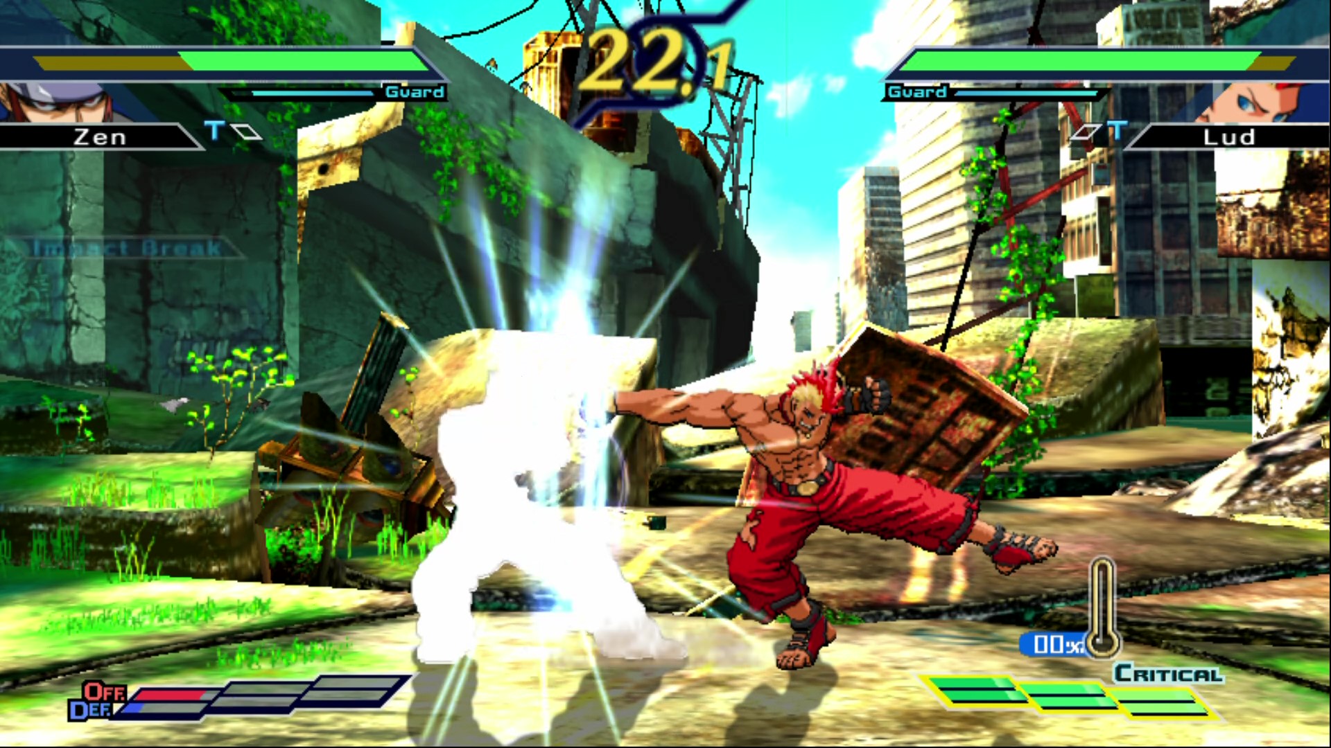 ガード中に方向キー後ろ入力+Dで上段インパクトブレイク、斜め後下+Dで下段インパクトブレイクが発動。成功すると相手の攻撃の硬直を長引かせ、隙を増やす事ができる。ただし、上段下段の選択を誤ると、ゲージだけ消費されてしまう。