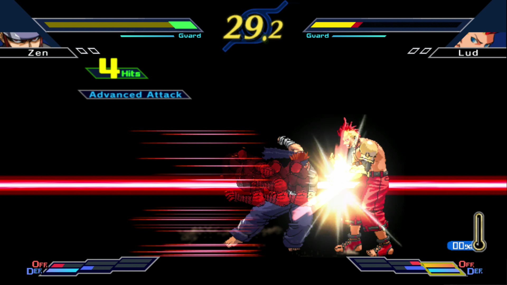 移動能力を伴う突進技で、通常技のキャンセルや、アドバンスドアタック自体を通常技でキャンセルも可能。これにより、ラッシュコンボ→アドバンスドアタック→ラッシュコンボという連続技が可能となる。