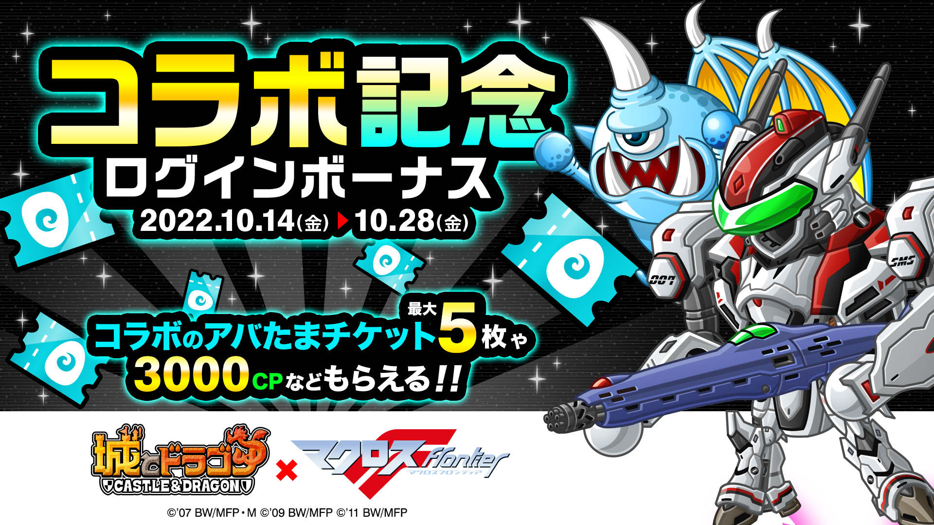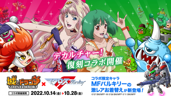 株式会社アソビズム(本社:東京都千代田区、代表取締役:大手智之)は、App Store・Google Playにて好評配信中の『城とドラゴン』で、アニメ『マクロスF』との復刻コラボイベントを、2022年10月14日(金)より開催いたします。