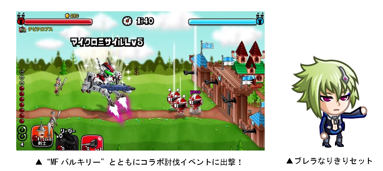 バトル内の「SP 討伐イベント」から、コラボ限定キャラ“MFバルキリー”を使用して挑戦できるコラボSP討伐イベント「アルト出撃!」に挑戦できます。特定のステージをクリアすることで剣士専用の限定お着替え“ブレラなりきりセット”を獲得することができます。