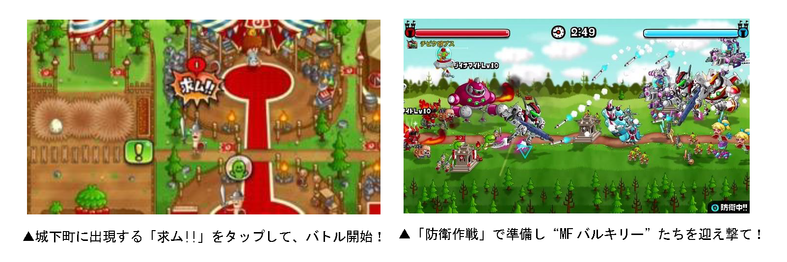 「VSバルキリー」とはMFバルキリーや城ドラのキャラが襲来してくるプレイヤー VS バルキリーの戦闘訓練イベントです。あらかじめ設定しておいた「防衛作戦」で城を守り、見事敵を撃退すると“ルビー”や“ドラゴンメダル”などの報酬を獲得することができます。襲来に備えて防衛隊列を整えよう!