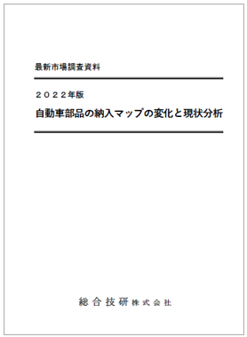 総合技研「2022年版 自動車部品の納入マップの変化と現状分析」は主要自動車部品150品目について、自動車部品メーカーのカーメーカーへの過去3年ごとの納入の変化及び各部品の技術の変化と今後の方向性について調査しています。