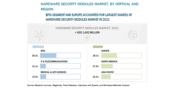 ハードウェアセキュリティモジュールの市場規模は、2022年の11億米ドルからCAGR13.1%で成長し、2027年には20億米ドルに達すると予測されています。世界各国の法律家や規制当局は、既存のデータセキュリティのコンプライアンスを改善し、新しい法的枠組みを導入することで、新しいデータセキュリティ規制を定義しています。例えば、ITチームのメンバーがネットワーク、データセンター、管理アカウントに関する知識を持ち、これらにアクセスすることでデータセキュリティのリスクが高まることに対応しています。データ保護のコンプライアンス要件が厳しくなる中、これに対応するポイントソリューションの使用も増えており、ハードウェアセキュリティモジュールの需要が高まっています。これらのモジュールは、暗号化、エンタープライズキーマネジメント、アクセスコントロール、セキュリティインテリジェンスを企業全体で使用し、静止データの保護によるコンプライアンス体制をサポートすることで、拡張性の高い実装基盤を提供します。ハードウェアセキュリティモジュールのメーカーは、FIPS 140-2 Level 3、PCI DSS、NIST、ANSIなどの規制を遵守する必要があります。