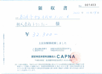 トリニティー製防犯カメラを1台導入いただくごとに100円を、認定NPO法人CAPNAへ寄付致します。
