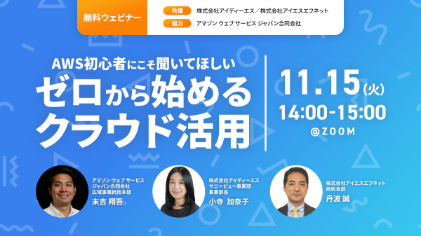 アマゾン ウェブ サービス(以下:AWS)のAWSアドバンストティア サービスパートナーである株式会社アイディーエス(本社:東京都港区、代表取締役:中野 貴志、以下アイディーエス)は2022年11月15日(火) に、ITインフラ構築、人材派遣事業を行う株式会社アイエスエフネットと「ゼロから始めるクラウド活用」ウェビナーを開催いたします。