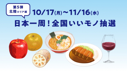 日本全国の“いいモノ”が抽選であたる大好評のシリーズ第5弾。本州の中央部、日本海にのぞむ北陸地方は日本三大深湾である富山湾や連なる山々の雪解け水といった自然の恵みを受け、海産物から農作物まで食の宝庫として知られている他、伝統工芸も盛んな歴史ある地域です。そんな北陸エリアの“いいモノ”が詰まった『北陸のカタログギフト』を抽選で20名の方にプレゼントします。抽選期間は2022年10月17日(月)~11月16日(水) です。ぜひ、期間内に抽選に参加し、豪華景品を当ててください。