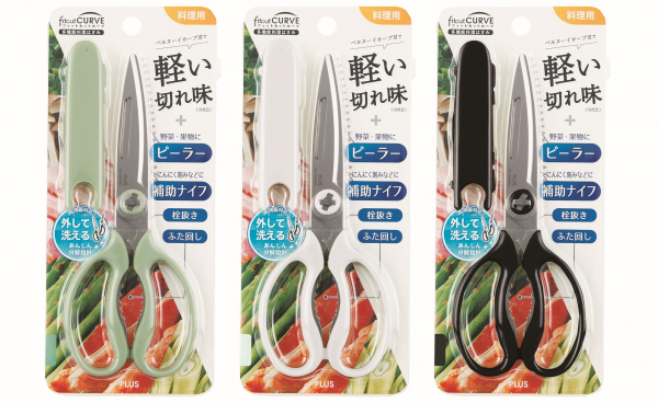 なお“料理はさみ”は、今回発売の「フィットカットカーブ 多機能料理はさみ」を加え、「洗えるチタン」「料理はさみ」「ひとくちカット」と、計4タイプのバリエーションとなります。