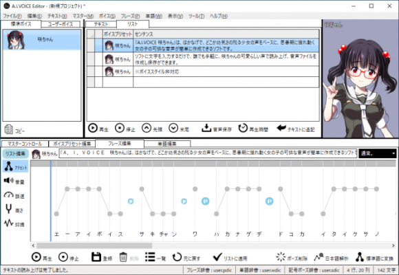 『A.I.VOICE 咲ちゃん』は、はかなげで、どこか幼気さの残る少女の声をベースに、思春期に揺れ動く女の子の可憐な音声が簡単に作成できるソフトです。ソフトに文字を入力するだけで、誰でも手軽に、咲ちゃんの可愛らしい声で読み上げ、音声ファイルを作成し保存ができます。