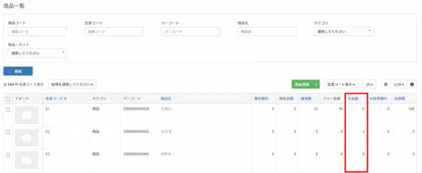 ○どの商品が具体的に何個欠品しているか、商品一覧から確認できるよう、「欠品数」の列を追加しました。