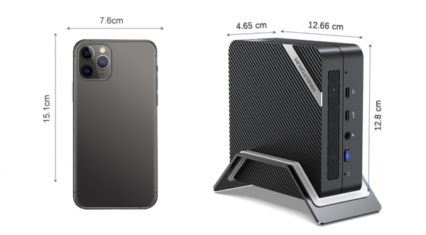 アルミ筐体が採用、省スペースの設計で、鞄に収まる127×128×47mmのボディ、635gくらいの重さです。ここまでのパワーを、ここまで軽々と持ち運べます。