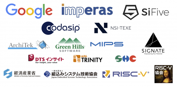 グーグル(Google LLC:米国), Imperas Software Ltd.(英国), SiFive(米国), Codasip(チェコ), グリーンヒルズソフトウエア(米国)、MIPS(中国)、株式会社SIGNATE(日本), NSITEXE(日本), アーキテック株式会社(日本), DTSインサイト(日本), イーソルトリニティ(日本)