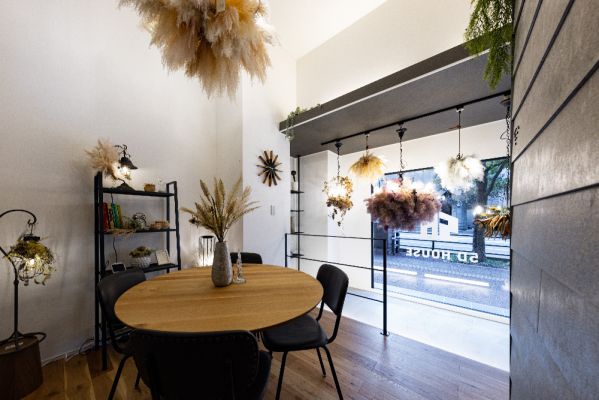 住まいを提供するオールハウスでは、自分らしい住まいづくりを検討される方やインテリア・ショップディスプレイを考えられている方に、REUNIQUEのドライフラワーシャンデリアを通じて唯一無二の空間演出をご提案しております。短い間で多くのお客様からご好評いただいてるドライフラワーシャンデリアですが、オールハウス福岡店の事務所開設に合わせ、店舗内にREUNIQUEの商品を展開することとなりました。