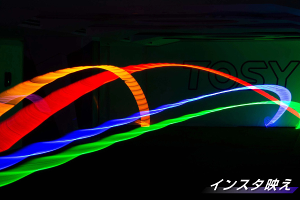 LEDの圧倒的な明るさは昼夜を問わず、屋内でも屋外でもプレイが可能です。さらに、TOSYは準備や片付けに時間や手間がかからない上、光ったTOSYを持って写真を撮ればSNS映えも狙えるでしょう。