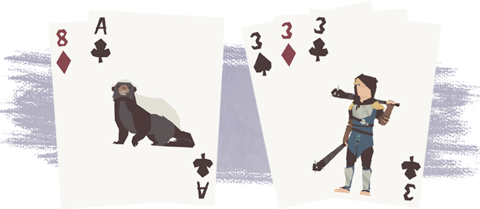 エースのカードは「動物の仲間」の絵柄ですが、ハートのエースの動物は各言語版で異なっており、日本語版では柴犬をチョイスしています。