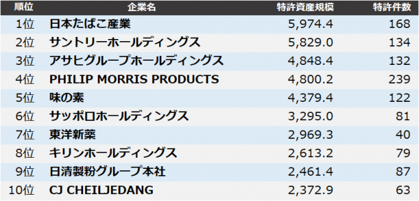 株式会社パテント・リザルトは11月8日、独自に分類した食品業界の企業を対象に、各社が保有する特許資産を質と量の両面から総合評価した「食品業界 特許資産規模ランキング2022」をまとめました。2021年4月1日から2022年3月末までの1年間に登録された特許を対象に、個別特許の注目度を得点化する「パテントスコア」を用いた評価を行い、企業ごとに総合得点を集計しました。