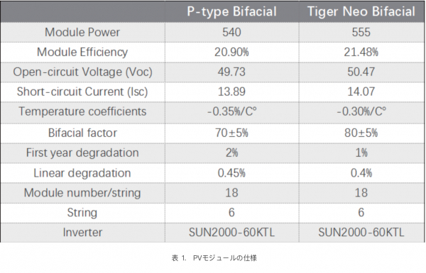 調査が行われた太陽光発電所は、寧波市(北緯29度52分、東経121度32分)にあります。その総設備容量は118.26kW。108台のP型PERC両面モジュール(182インチ、144個のハーフカットセル)を比較グループ、108台のN型Topcon両面モジュール(182インチ、144個のハーフカットセル)を実験グループとして、一軸追尾式トラッカー、産業用屋根に設置しました。系統に連系しています。