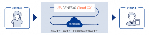 ・ジェネシスが提供中のクラウド型コンタクトセンター・サービス「Genesys Cloud CX」をKDDI提供中のクラウド音声網へ接続することで、「Genesys Cloud CX」に固定電話番号の使用と番号ポータビリティの機能を追加しました。