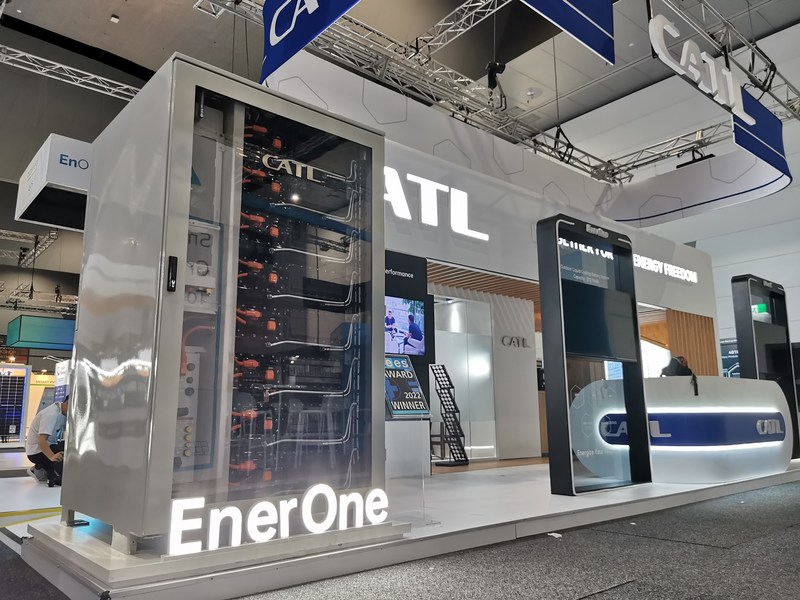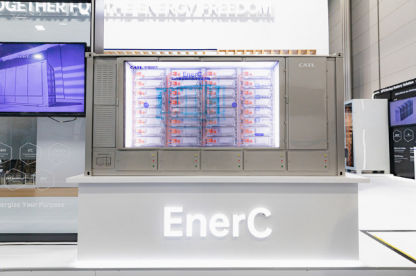 同社のブースでも特に注目を集めているのが、CATLの最高級ラインの屋外用液冷バッテリー・システムで、長寿命かつ高度のインテグレーションと安全性を備えた、EnerOneです。
