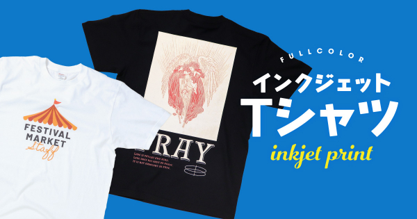 インクジェットプリントでは、フルカラープリントに対応しました。カラーインクのみでプリントするフルカラープリントはシンプルな白Tシャツにお得にプリントできます。