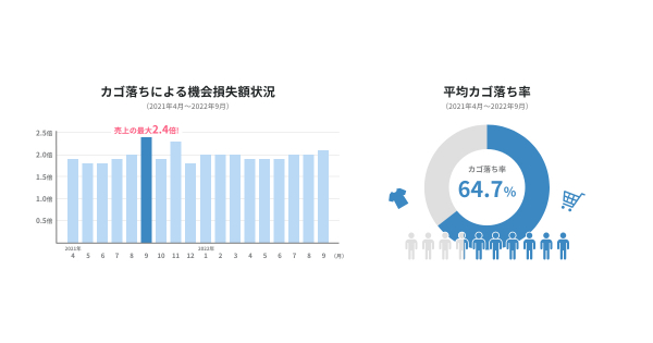 その結果、ECサイトの機会損失額は平均で売上の約2倍となっており、カートに商品を入れて購入をしなかったカゴ落ち率は約64.7%となっていたことができたことを10月31日に発表いたします。