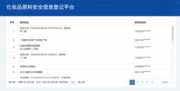 本年1月からスタートした原料データベース(正式名称:化粧品原料安全情報登記プラットフォーム)、現時点で公表された登録済み原料の総数は166,166件に上ります。