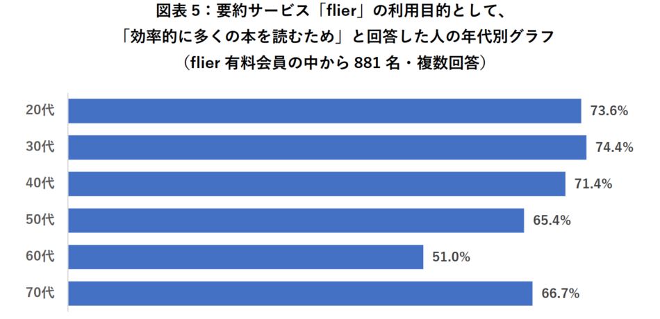 ・年代別に見ると「効率的に多くの本を読むため」と回答したのは、20代だけではなく、30~40代の7割以上が回答。