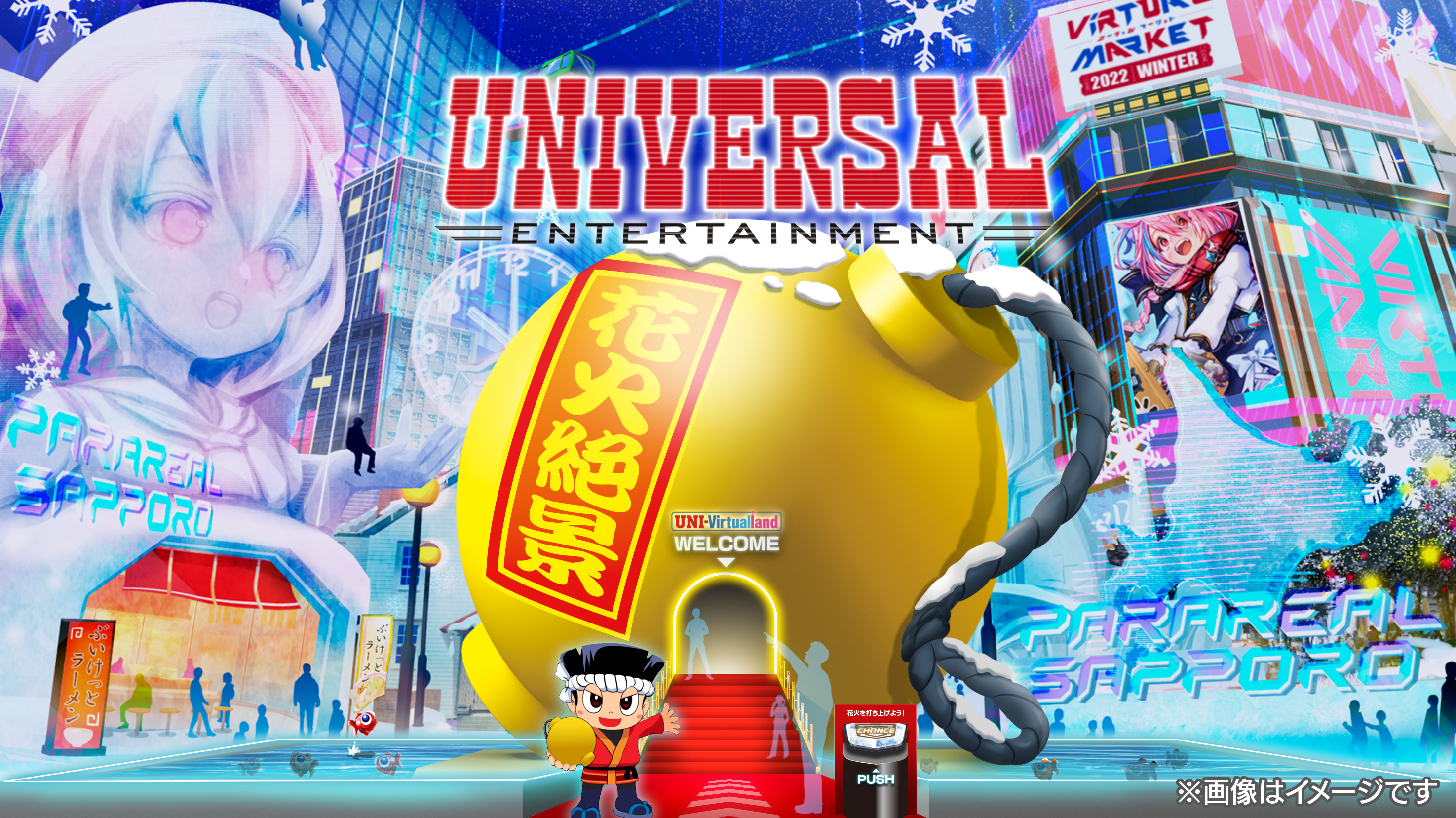 株式会社ユニバーサルエンターテインメント(本社:東京都江東区、代表取締役社長:富士本 淳)は、株式会社HIKKY(本社:東京都渋谷区、代表取締役:舟越 靖)が主催・運営する世界最大級のVRイベント「バーチャルマーケット2022 Winter」に出展します。