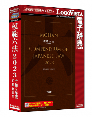 ロゴヴィスタ株式会社は、パソコン用電子辞典において絶対なる信頼と実績を誇るベストセラー「LogoVista電子辞典シリーズ」の新作として、Windows版および、Macintosh版『模範六法 2023 令和5年版 CD-ROM』を、2022年11月25日(金)よりパソコンショップ、カメラ系量販店、大手書店、ダウンロード販売サイトなどで発売いたします。