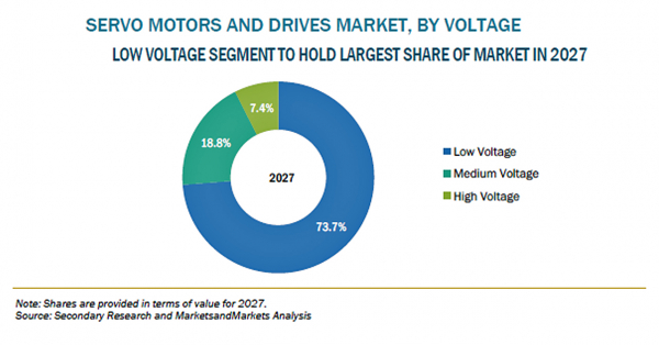サーボモーター・サーボドライブ市場は、ハードウェア、ソフトウェア、サービス別に分類されます。2027年までの間は、ハードウェアセグメントがより大きなシェアを占めると予測されます。これは、ハードウェアセグメントを構成するサーボモーターとサーボドライブ コンポーネントが広く使用されているためです。サーボモーター・サーボドライブの需要が高まっている主な理由には、産業オートメーションの急速な成長と進歩が含まれます。自動化のセットアップには、メンテナンスコストを抑えながら高レベルの精度、正確性、およびトルクを提供するサーボモーター・サーボドライブが必要です。
