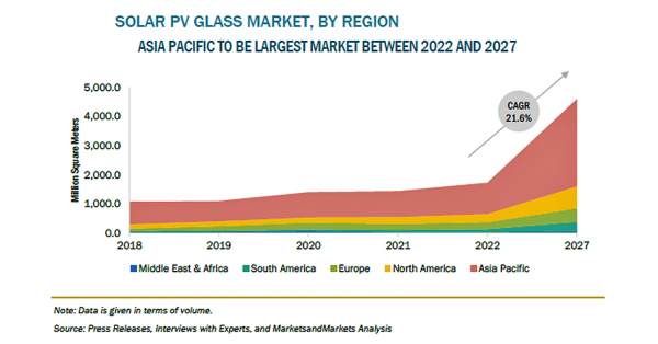 太陽光発電用ガラスの市場規模は、2022年の62億米ドルからCAGR27.9%で成長し、2027年には211億米ドルに達すると予測されています。同市場の成長は、世界中の様々なユーティリティ用途の増加により牽引されています。