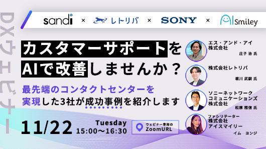企業のDXを推進する国内最大級の AI ポータルメディア「AIsmiley」を運営するアイスマイリー(東京都渋谷区、代表取締役:板羽晃司)は、2022年11月22日(火)15時から「最先端のコンタクトセンターの成功事例」をテーマにウェビナーを開催します。